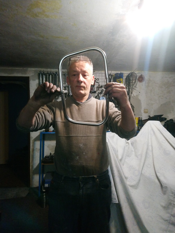 Pięknie dziękuję za uznanie  ;D  i sam się pochwalę  ;D  daję zdjęcia i powiadamiam wszem i wobec zrobiłem dziesięć kompletów  ;D  zostało już osiem , dwa są gotowe , reszta selektywnie będzie wykańczana , czyli szlifowana i polerowana , blachę czyli płaskownik z jakiego zrobiłam uchwyt przykręcany do ramy jest grubszy niż oryginał ma 2,5 mm bo nagminnie ta blacha w oryginałach pękała a była zrobiona z blachy 1,5 mm więc myślę ze dłużej wytrzyma ta na 2,5 mm  ;D  jeśli jest ktoś zainteresowany tymi uchwytami zamieszczę wątek w innym dziale tam podam cenę  ;D  . Leszek już przysłał mi wiadomość że pasuję czyli myślę że już przykręcił  ;D  .