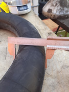 Niestety tu wyszły pewne niuanse. Jeszcze nie wiem co z tym zrobię. Moja tokarka nie chwyci tak dużego okręgu jakim jest dętka. Może uda mi się to jakoś poprostować na prasie.