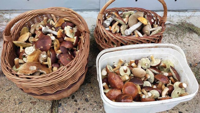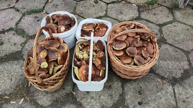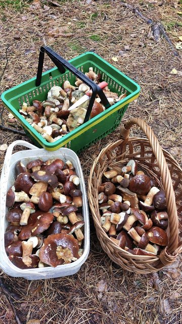 mój zbiór z wczoraj, 5 godz łażenia, nogi w dupe właziły.., druga fota moje i dziadka grzybki;