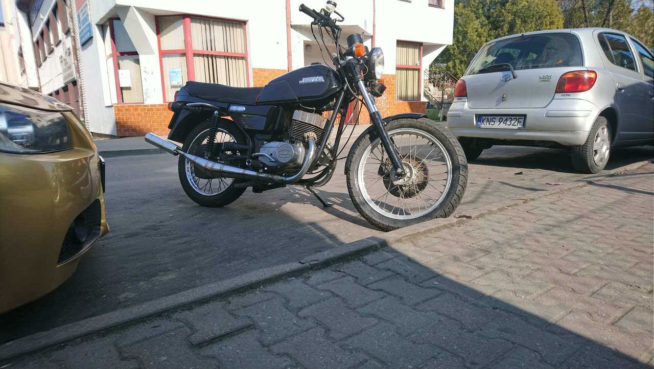 Dziś nawiedziłem Pana Diagnostę, marudził że numer za mocno pomalowany, i że z lewej strony, ale pieczęć przystawił. Trzeba dopracować sprzęgło, bo albo ciągnie albo ślizga, i tylny hamulec jest słaby nawet jak na Jawe. Ale już jeżdżę :D I powoli docieram silnik.