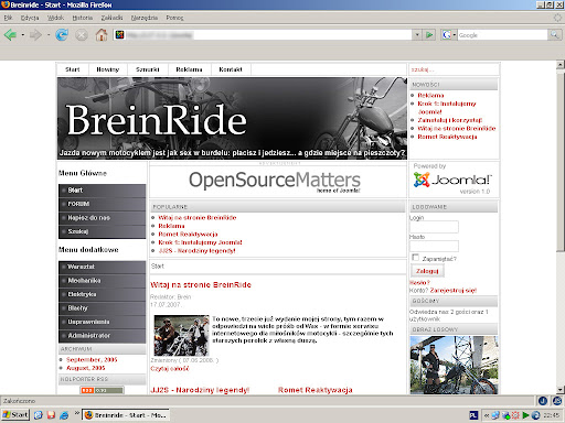 tym razem ma to być serwis - nie strona - czyli tak jak w przypadku wolnej strefy, czy riders (które nota bene też na joomli stoją) użytkownicy będą mieli możliwość edycji zawartości serwisu po zalogowaniu itd.