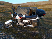 Wstajemy bardzo wcześnie, o ósmej jesteśmy gotowi do jazdy. Niestety okazało się, że Jawa nie ma powietrza z przodu. Wymiana dętki trwa około trzech godzin.