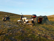 Po północy opuszczamy Nordkapp, szukamy miejsca do spania na dziko. Po przejechaniu około 15 km rozkładamy namiot 300m od drogi, wieje silny wiatr. Idziemy spać po pierwszej w nocy.