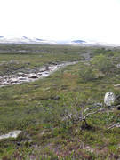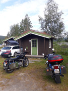 Ruszamy dalej około godziny 9-tej. Dominuje krajobraz typowy dla tundry: karłowate zarośla i rzadko rosnące niskie brzózki. Około godziny 21-tej zatrzymaliśmy się na kempingu Storforsen. Słychać było w oddali szum wodospadów. Rozbicie namiotu kosztowało nas 220 NOK (około 100zł). Mieliśmy dostęp do „domowej” kuchni.