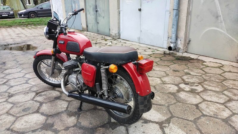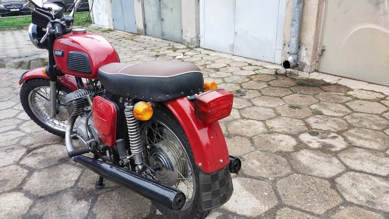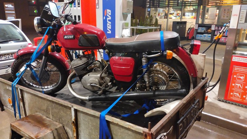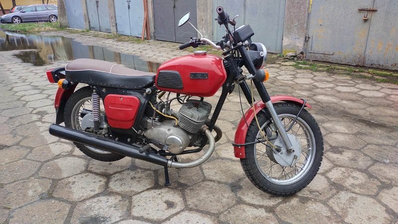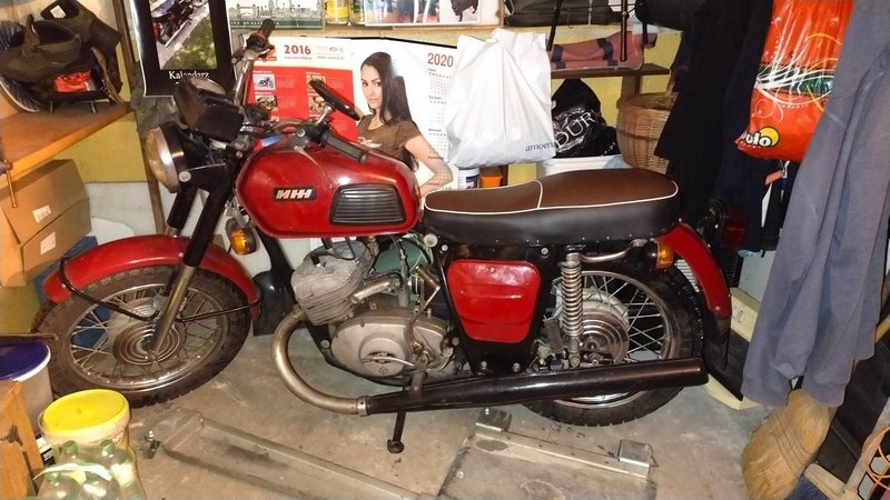 i stało się, do wczoraj myślałem że już się wyleczyłem, ale niestety choroba "usmarowanych rąk nie puszcza tak szybko, nie wiem po co go kupiłem, nie wiem czy będę mógł kiedyś nim pojezdzić, ale.., chyba za dużo zaglądałem do tematu Jacka i bardzo mi sie spodobało to ruskie jeździdło.., no i jest: Iż Jupiter 4, poj 350, 83r, stan wizualny jak widać niezły, mechanicznie oczywiście jest trochę do ogarnięcia, kupiony nie za miliony, kompletny w 95%, stan silnika bliżej nie znany, kilka lat temu podobno odpalany od czasu do czasu, tłoki chodzą, biegi są, prądnica w kartonie, niby naprawiana i nie założona.., rama, blachy, nie pogięte, chromy ładne, opony zdrowe, papierów brak, umowa ze sprzedającym jest, po remoncie pójdzie chyba na żółtą blaszkę, z grubsza wszystko, kilka fotek, Jacek, Bison, inni iżowcy.., sorry że będę Wam teraz zawracał 4 litery, bo wiedzy u mnie na temat tego sprzętu nie za wiele.