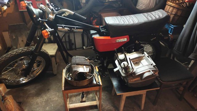 wyczyściłem i oblukałem silnik z grubsza, trgedii niema, luzów na korbach niema, progów w cylindrach też nie, tłoki Ok, trzeba tylko pierścienie dokupić, bo są za duże luzy na zamkach